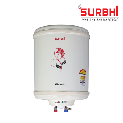 Safety and durability are at the forefront of the Surbhi Classic Water Heater design. The overheat cut-off feature adds an extra layer of protection by automatically halting the heating process if temperatures exceed the safety threshold. The robust metallic body not only enhances the geyser’s resilience but also adds an aesthetic appeal to your bathroom.